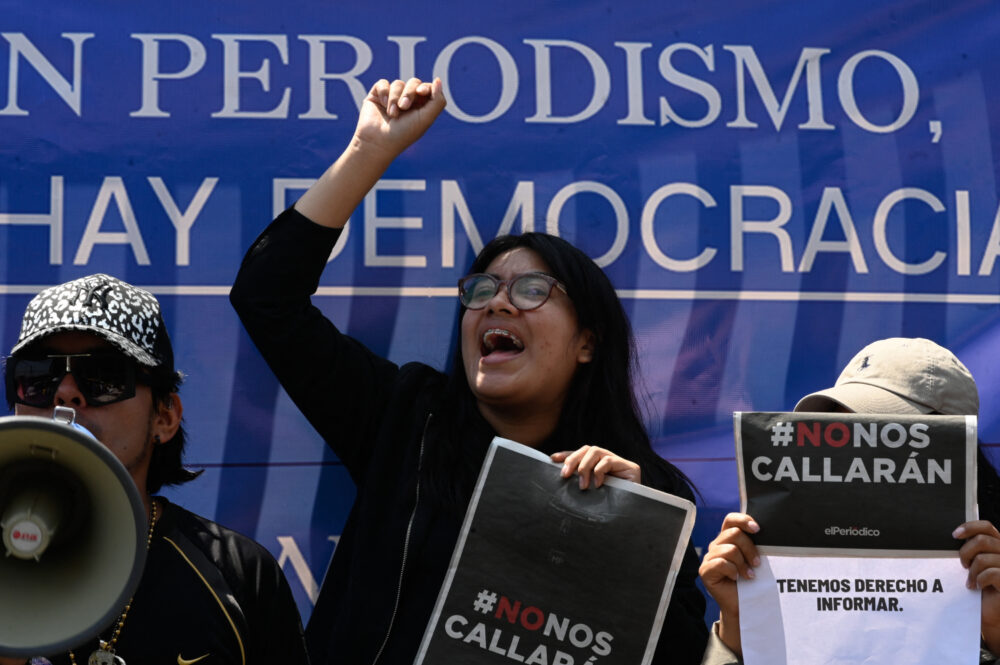 Demonstration von Journalist:innen und der Zivilgesellschaft in Guatemala Stadt vor den Wahlen am 25. Juni, März 2023.