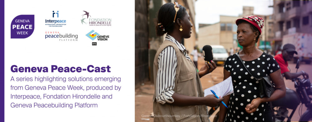 „Peace is possible“ is the motto of Geneva Peace Week 2022, an annual conference that brings together peacebuilders, NGOs, activists, researchers, diplomats and students from all over the world in Geneva for a week from 31 October to 4 November. For the second year, Fondation Hirondelle has joined forces with Interpeace and the Geneva Peacebuilding Platform to produce a podcast featuring interviews with conference participants.