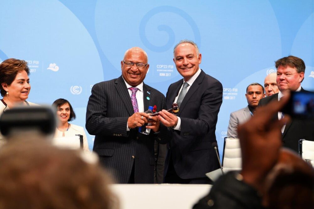 Fiji a décidé de marquer le ton d’emblée en ouverture de la COP23 à Bonn en appelant au rassemblement de tous les acteurs. C’est à dire les autorités, la société civile, le secteur privé et les organisations confessionnelles. L’idée annoncée est de mettre sur pied une « Grande Coalition » qui se focalisera sur la vulnérabilité aux phénomènes climatiques extrêmes. Pourquoi ce focus ? D’une part, 2017 enregistre un bilan particulièrement désastreux. Tout le monde garde en tête les récents ouragans qui ont traversé tout l’Atlantique sud. D’autre part, les îles Fiji sont particulièrement exposées à ces phénomènes et la montée des océans.