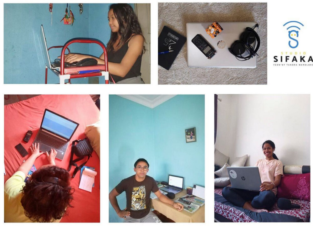 Quelques-uns des journalistes du Studio Sifaka en télétravail à Antananarivo, Madagascar.