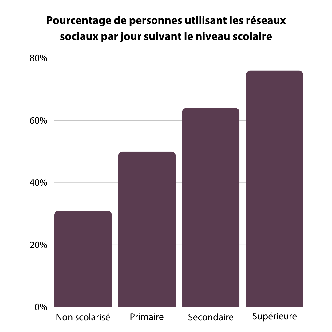 L’étude d’audience démontre que les personnes scolarisées vont davantage sur les réseaux sociaux et internet. Studio Kalangou se développe donc également sur les médias sociaux afin de toucher ces segments de la population.